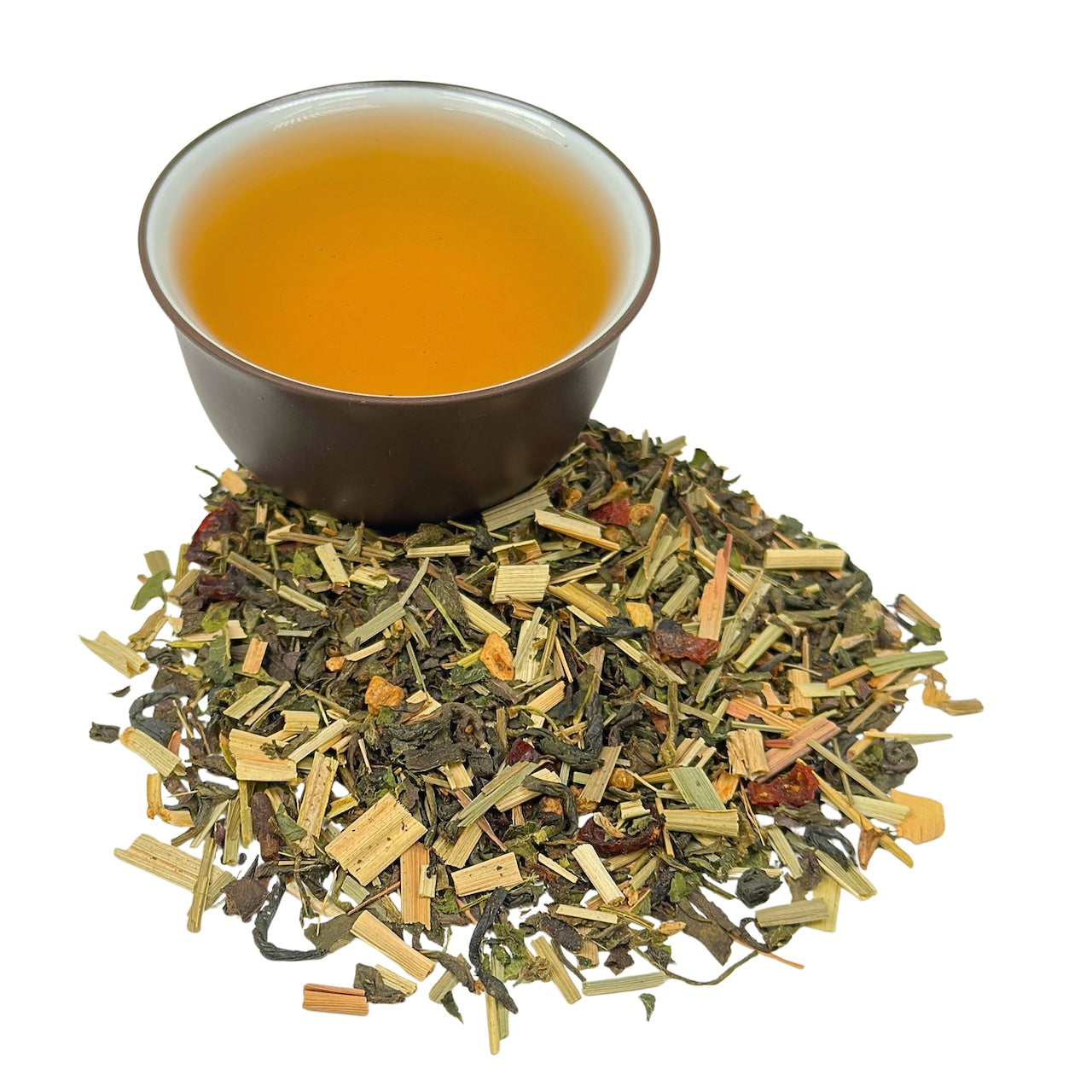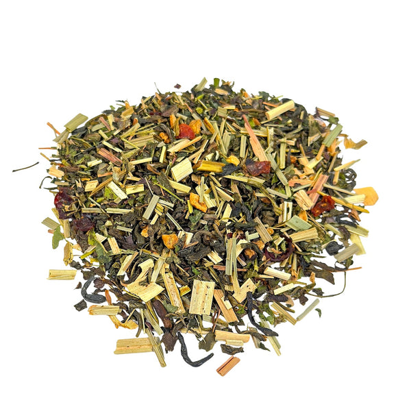 · A vibrant blend of green tea, cleansing roots, and restorative herbs with refreshing lemon and ginger. Created to support balance, vitality, and a fresh start. Any day of the week.