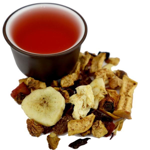 A light and fresh fruit and berry infusion that has a lot less hibiscus than most other fruit blends, hence why the colour infuses as a light pink. We should tell you though, every scoop from the bag is different from the last, so the flavors change slightly — it keeps your palate salivating and guessing. Truly delightful over ice!