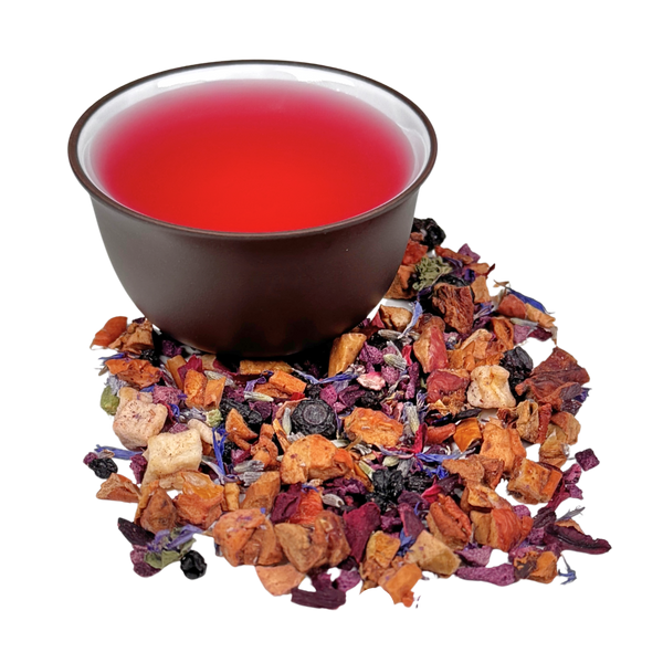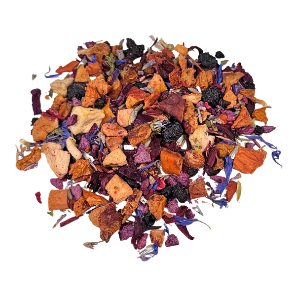 Delicately fragrant lavender meets the sweet, vibrant flavour of blueberries in this beautifully balanced infusion. The soft, floral notes of lavender are perfectly complemented by the rich fruitiness of blueberries—celebrated by many as a superfruit. Naturally caffeine-free and soothing, this blend is as lovely hot as it is refreshing over ice.
