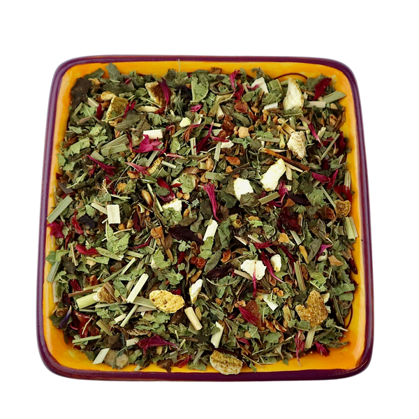When life gives you lemons…. just make a pot of our Lemon Drop herbal tisane! The combination of lemon balm balanced with lemon verbena and lemongrass is invigorating. Add a few citrus peels and some hibiscus and you’ll have a whole new outlook on life 😉