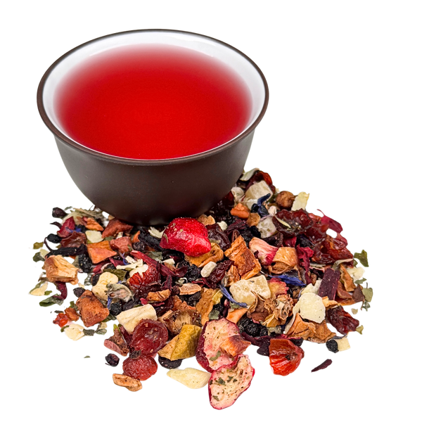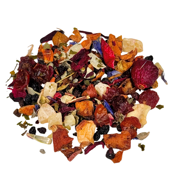 With its exotic smell and taste of melon, peach, pineapple and kiwi this blend is a truly tempting and delicious. At the heart of the blend lies damiana—an herb long celebrated for its mood-lifting qualities—adding a subtly sensual note to this joyful tea. Naturally caffeine-free and full of flavour, it's a fun and flirty brew, perfect hot or iced.