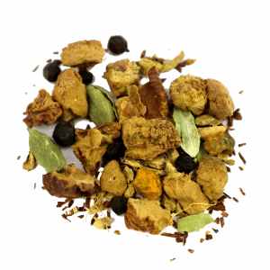A soothing concoction of Rooibos with heaps of dried turmeric root and apples pieces to give this infusion a full bodied and soul warming effect. No added flavours were used in creating this blend, just pure wholesome Organic Rooibos and spices.