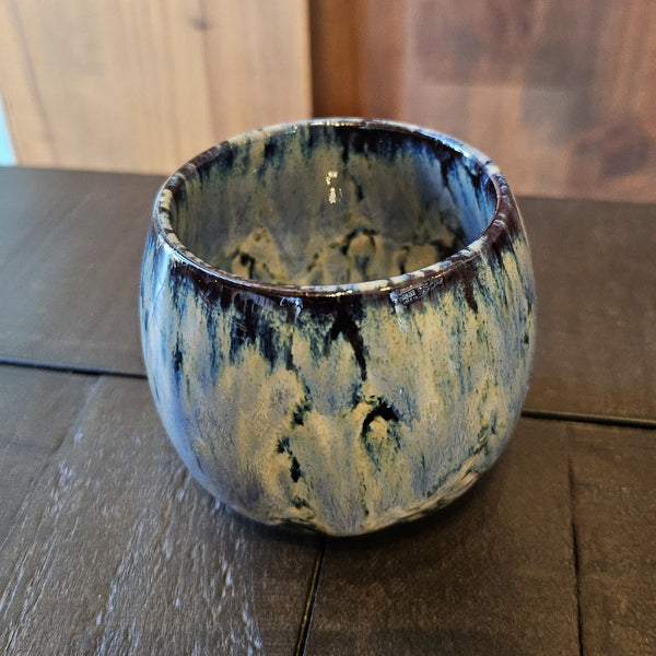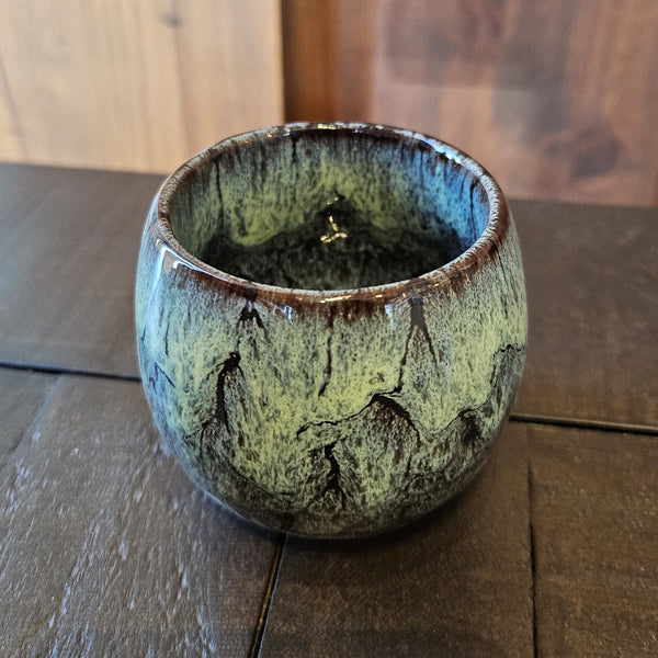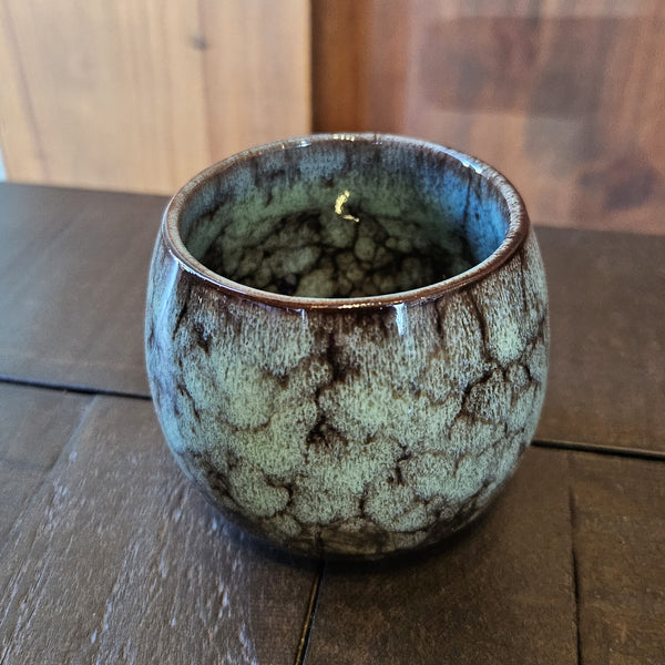 This hand-glazed artisan, Japanese style tea cup features a mesmerizing, high-gloss glaze that flows like molten velvet. Each piece is unique, showcasing cascading brushstrokes and organic color transitions that evoke the beauty of a mountain sunset or a blooming flower. The cup’s rounded form fits naturally in the hand, enhancing the meditative ritual of tea drinking.