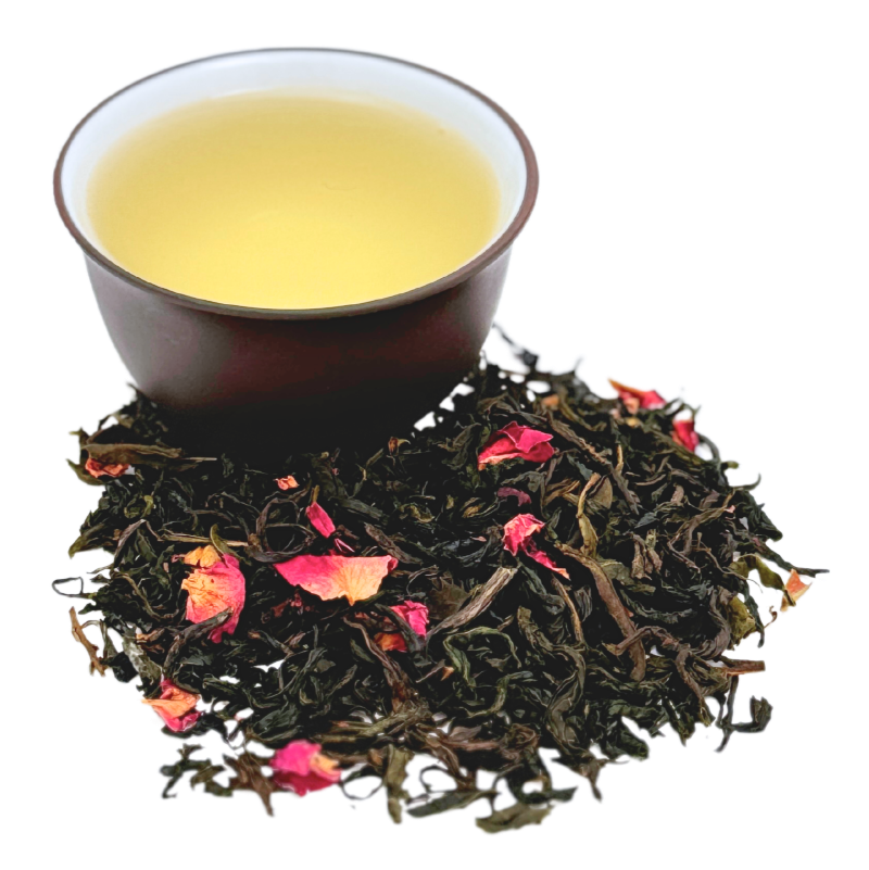 Belizean Bloom, our exquisite new green tea that transports you to a lush garden in Belize. Featuring a vibrant green tea base, this delightful blend showcases enchanting notes of jasmine and rose, perfectly balanced with the tropical sweetness of lychee and the refreshing zest of grapefruit and delicate peach.