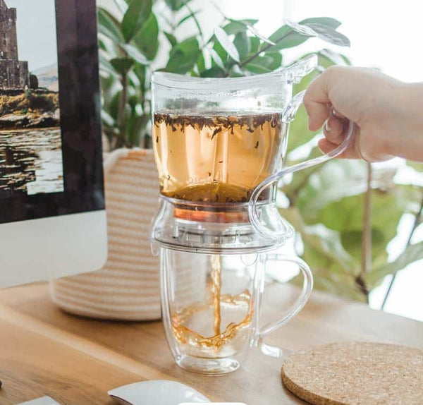 Enjoy a cup of freshly brewed loose-leaf tea or coffee without the mess. Just add any loose-leaf tea to the Steeper and pour in hot water. Once it's ready, simply place the steeper atop of any mug and watch as the built-in strainer effortlessly pours you a cup of tea!